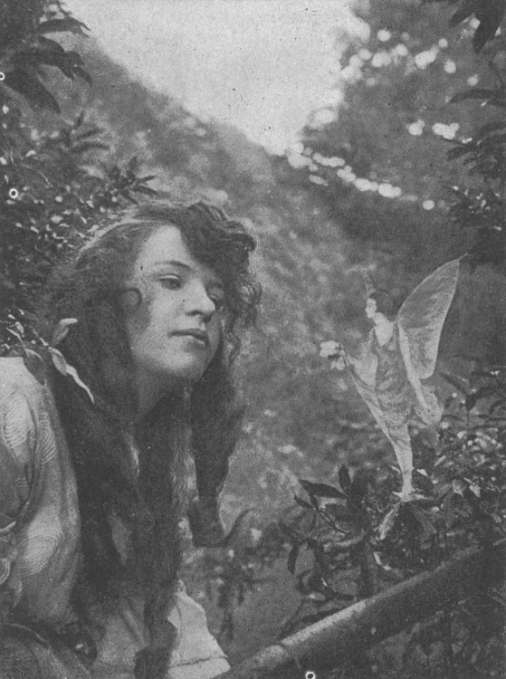 nothing more than childish fancy, and let it pass. Mr. Wright came into possession of a small camera in 1917, and one Saturday afternoon yielded to the persistent entreaties of his daughter and allowed her to take it out. He placed one plate in position, and explained to her how to take a "snap." The children went away in high glee and returned in less than an hour, requesting Mr. Wright to develop the plate. While this was being done Elsie noticed that the fairies were beginning to show, and exclaimed in an excited tone to her cousin, "Oh, Frances, the fairies are on the plate!" The second photograph was equally successful, and a few prints from each plate were given to friends as curiosities about a year ago. They evidently attracted little notice until one was shown to some of the delegates at a Theosophical Congress in Harrogate last summer.