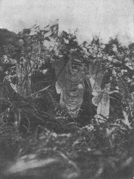 sunny weather than in damp or cold. Finally, the girl's remark that the shapes were getting more diaphanous was a very suggestive one, for it is with childhood that certain forms of mediumship are associated, and there is always the tendency that, as the child becomes the woman, and as the mind becomes more sophisticated and commonplace, the phase will pass. The refining process can be observed in the second series of pictures, especially in the little figure which is holding out the flower. We fear that it has now completed itself, and that we shall have no more demonstrations of fairy life from this particular source.