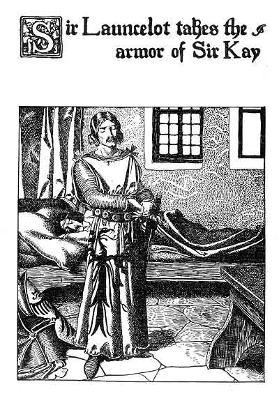Now after a while Sir Kay awoke, and he found that Sir Launcelot was gone, and when he looked he found that his own armor was gone and that Sir Launcelot's armor was left. Then he wist what Sir Launcelot had done, and he said: "Ha! what a noble, courteous knight is the gentleman. For he hath left me his armor for my protection, and whilst I wear it and carry his shield and ride his horse, it is not likely that anyone will assail me upon my way. As for those who assail him, I do not believe that they will be likely to find great pleasure in their battle."