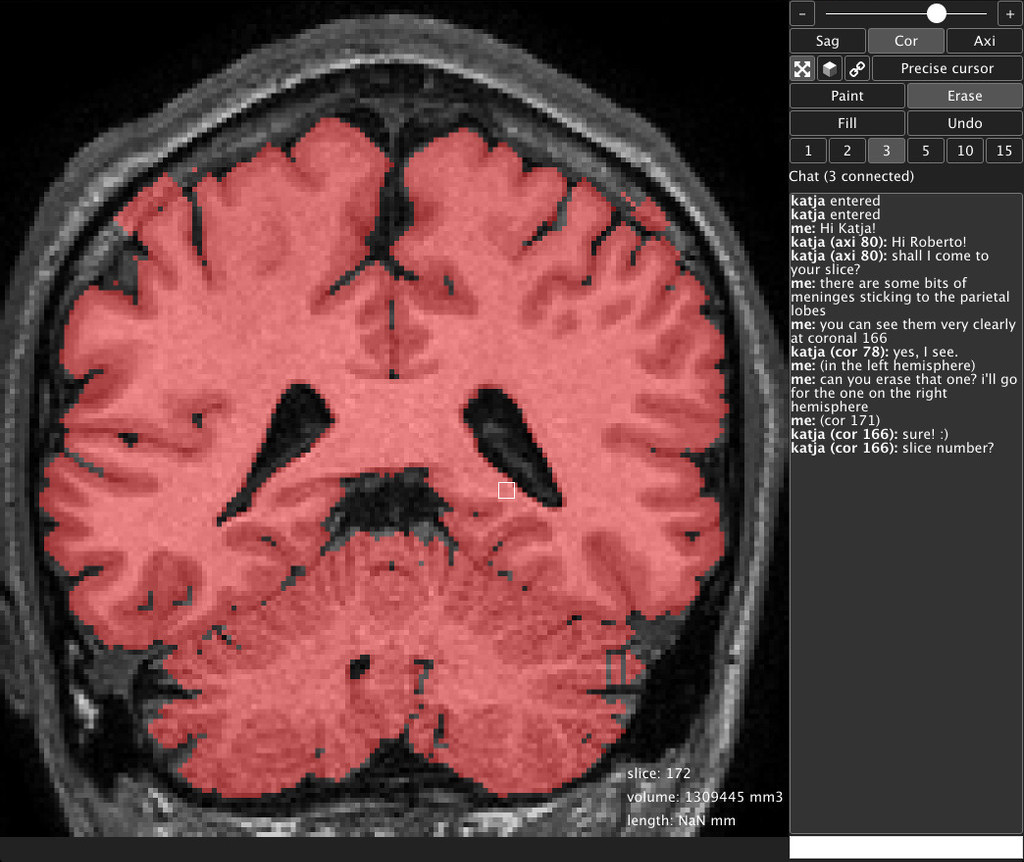 We had the opportunity to explore the sonification of real-time EEG data, to work together on the segmentation of the brains from our Brain Catalogue, and we had tutorials on brain tractography, functional parcellation of the brain and genomics.