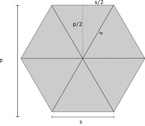 \[\frac{s}{2}^2 + \frac{p}{2}^2 = s^2\]which you can solve to find p = sqrt(3)*s
